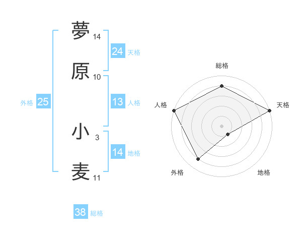夢原 小麦さんの天格は24画の5点!