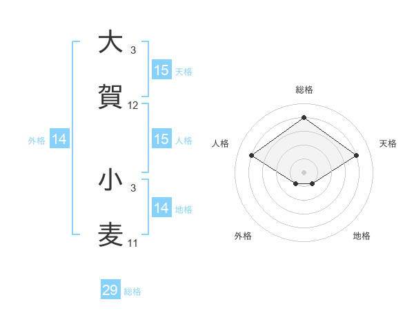 大賀 小麦さんの天格は15画の4点!