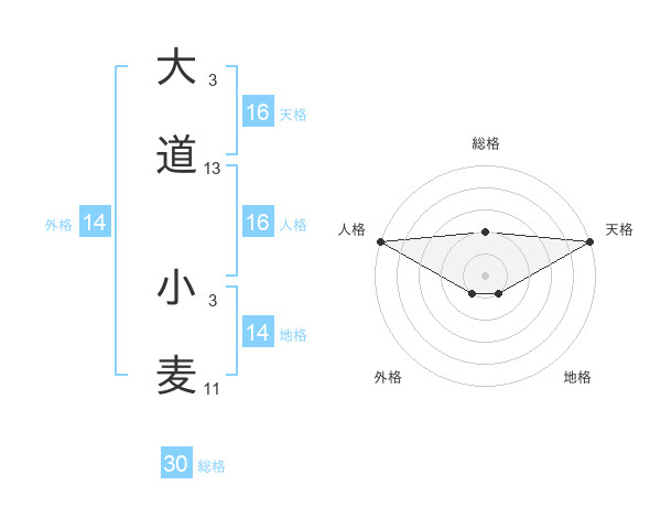 大道 小麦さんの天格は16画の5点!