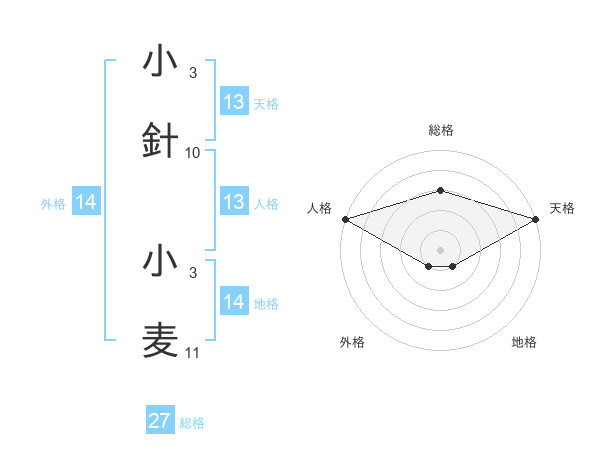小針 小麦さんの天格は13画の5点!
