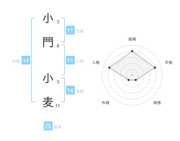 小門 小麦さんの総格は25画の4点!