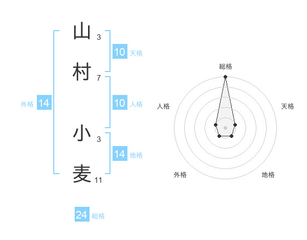 山村 小麦さんの総格は24画の5点!
