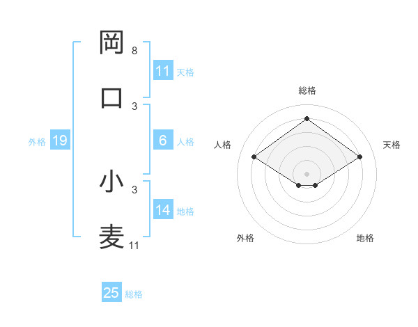 岡口 小麦さんを姓名の画数から五運を鑑定
