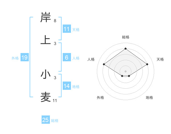 岸上 小麦さんの総格は25画の4点!
