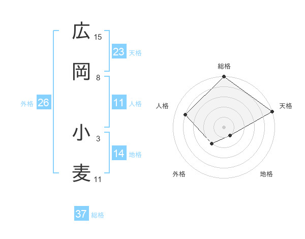 広岡 小麦さんの総格は37画の5点!