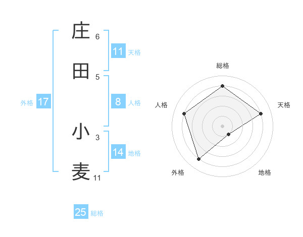 庄田 小麦さんの天格は11画の4点!