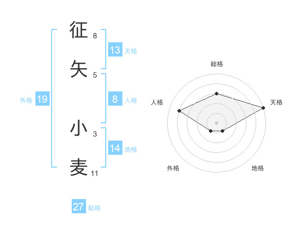 征矢 小麦さんの天格は13画の5点!