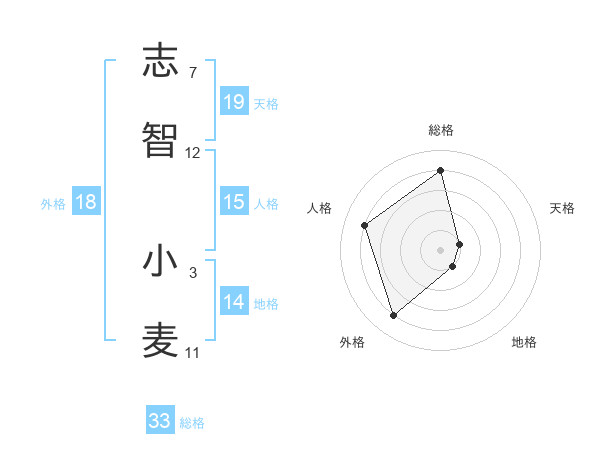志智 小麦さんの外格は18画の4点!