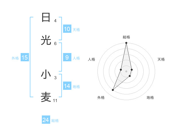 日光 小麦さんの外格は15画の4点!