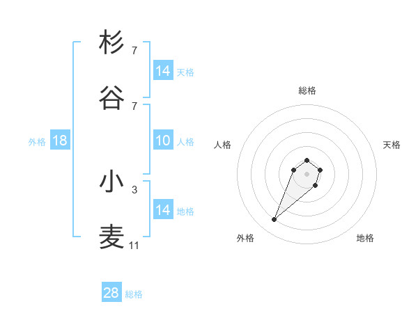 杉谷 小麦さんの総格は28画の1点!