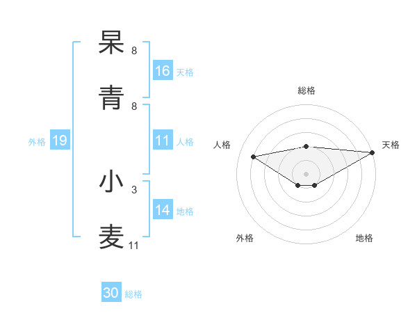 杲青 小麦さんの総格は30画の2点!