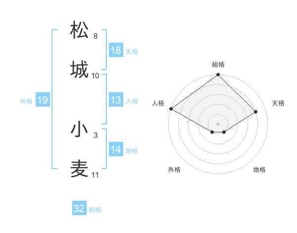 松城 小麦さんの総格は32画の5点!