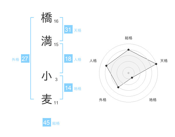 橋満 小麦さんの天格は31画の5点!