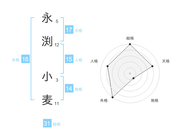 永渕 小麦さんを姓名の画数から五運を鑑定