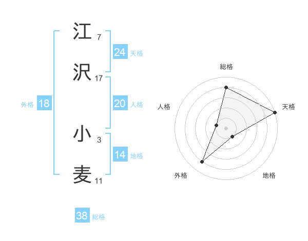 江沢 小麦さんの天格は24画の5点!