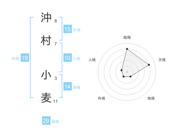 沖村 小麦さんの総格は29画の4点!