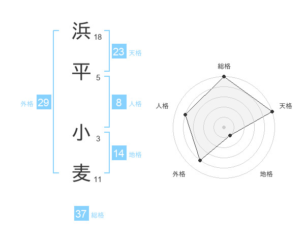 浜平 小麦さんの総格は37画の5点!