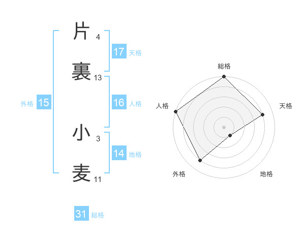 片裏 小麦さんを姓名の画数から五運を鑑定