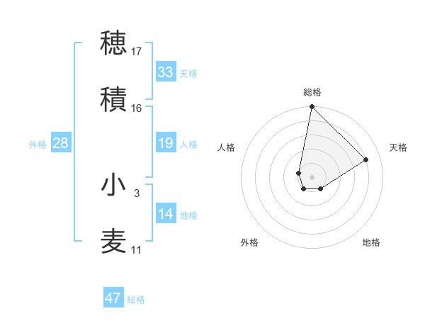 穂積 小麦さんの天格は33画の4点!