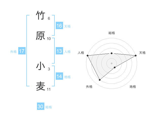 竹原 小麦さんを姓名の画数から五運を鑑定