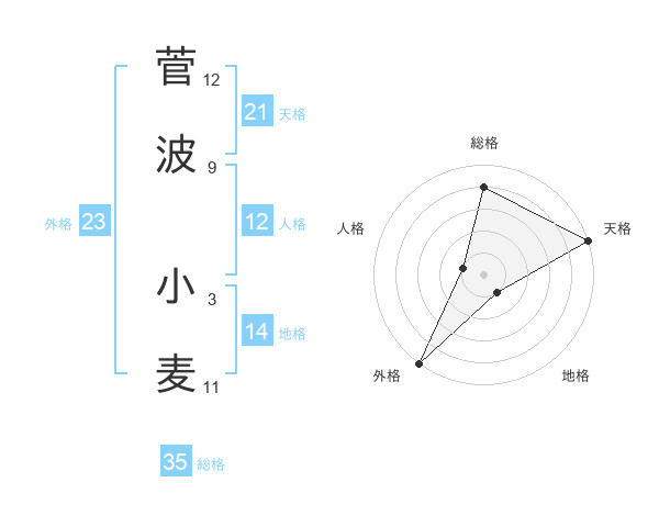 菅波 小麦さんの総格は35画の4点!