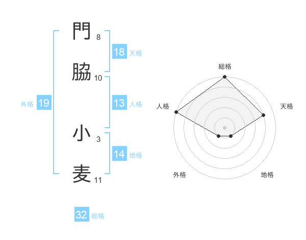 門脇 小麦さんを姓名の画数から五運を鑑定