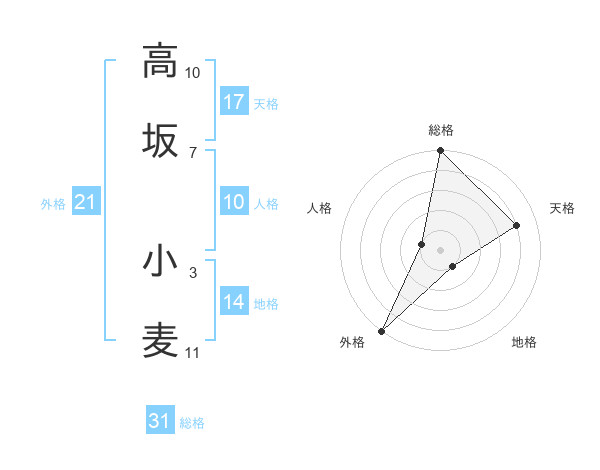 高坂 小麦さんを姓名の画数から五運を鑑定