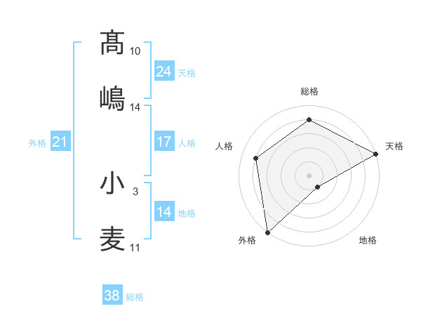 髙嶋 小麦さんの総格は38画の4点!