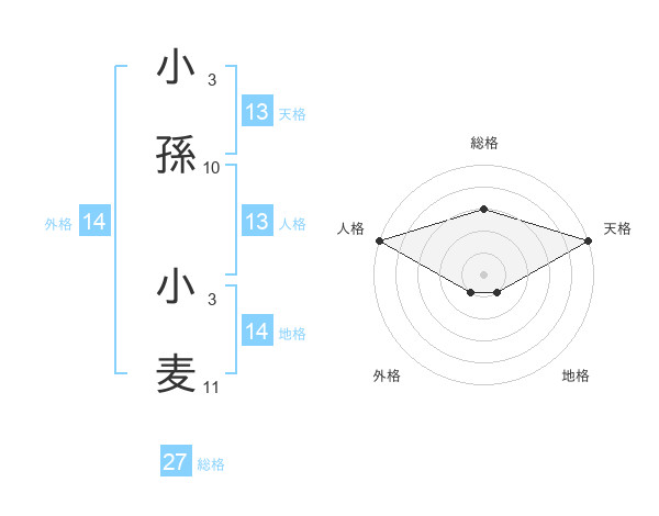 小孫 小麦さんを姓名の画数から五運を鑑定