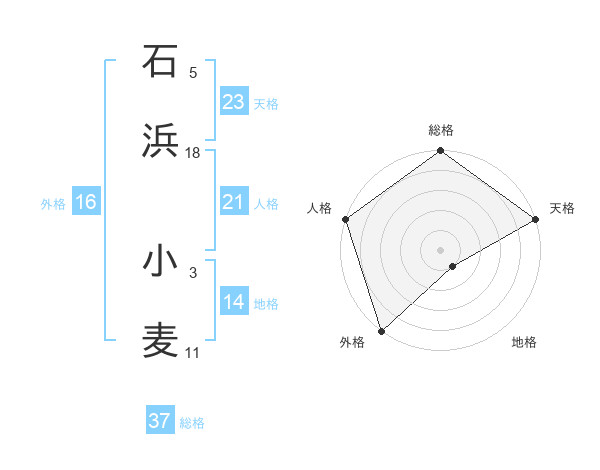 石浜 小麦さんを姓名の画数から五運を鑑定