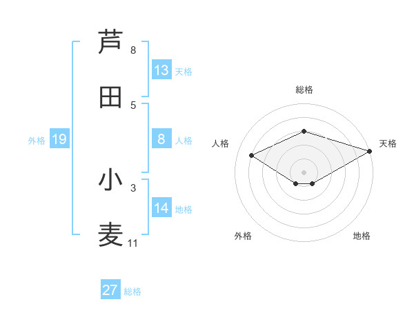 芦田 小麦さんの天格は13画の5点