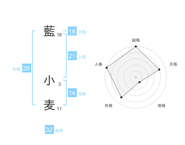藍 小麦さんの総格は32画の5点