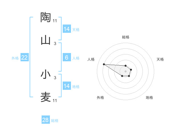 陶山 小麦さんを姓名の画数から五運を鑑定