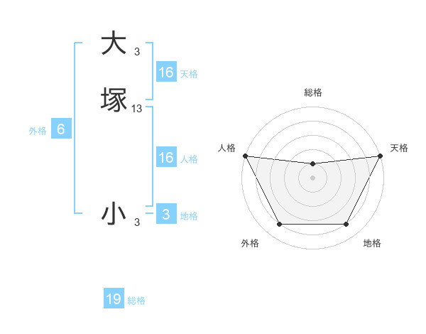 大塚 小さんの天格は16画の5点!