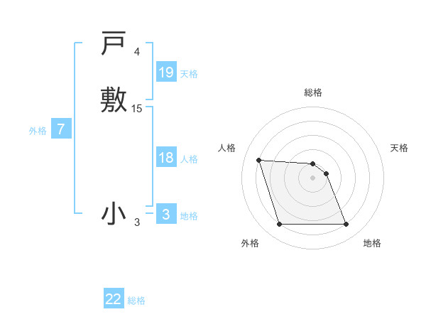 戸敷 小さんの地格は3画の4点!