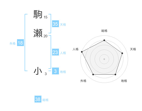 駒瀬 小さんを姓名の画数から五運を鑑定