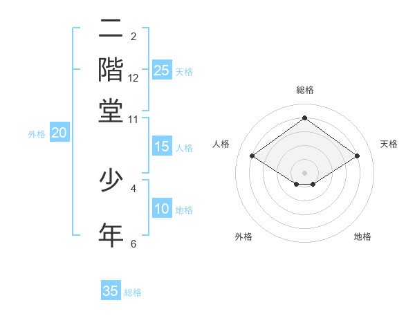 二階堂 少年さんを姓名の画数から五運を鑑定
