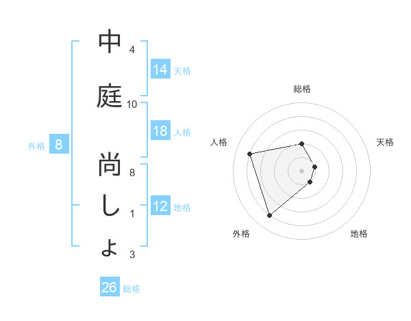 中庭 尚しょさんの外格は8画の4点!