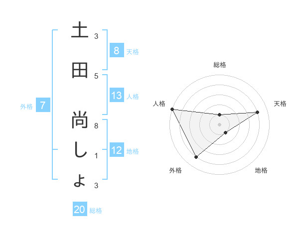 土田 尚しょさんを姓名の画数から五運を鑑定