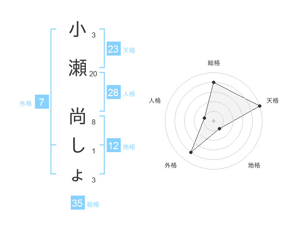 小瀬 尚しょさんの天格は23画の5点!
