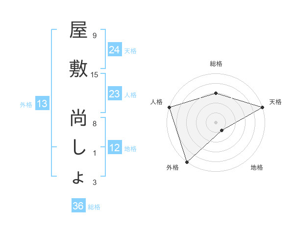 屋敷 尚しょさんを姓名の画数から五運を鑑定