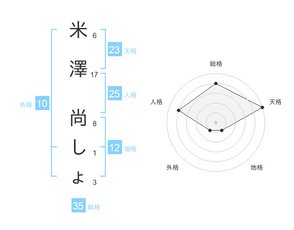 米澤 尚しょさんの総格は35画の4点!