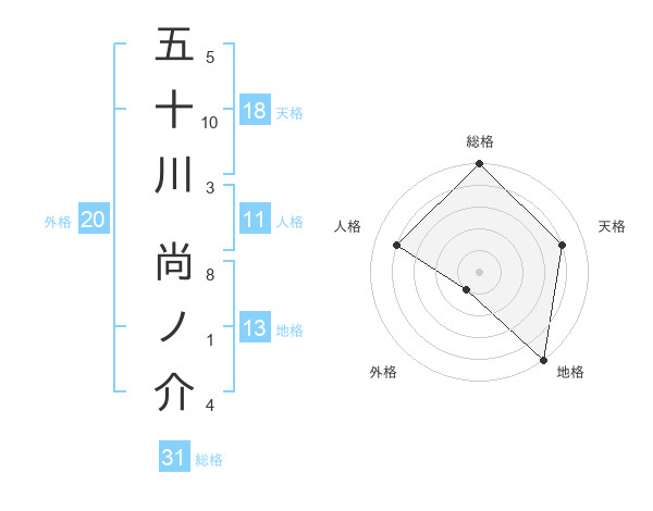 五十川 尚ノ介さんを姓名の画数から五運を鑑定