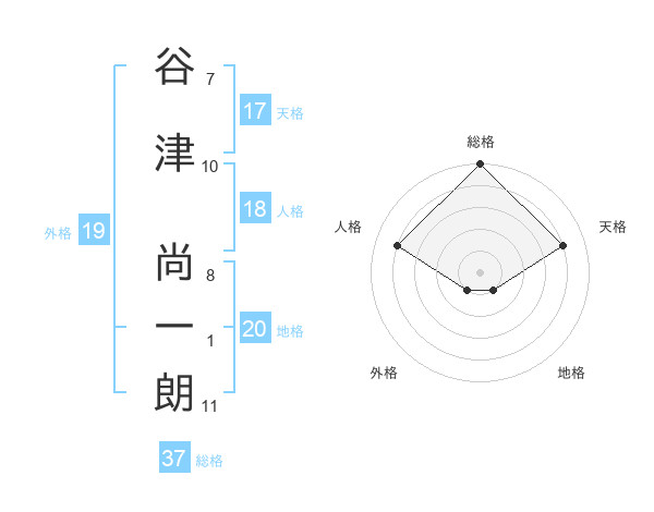谷津 尚一朗さんの総格は37画の5点!