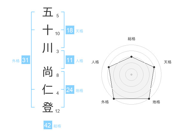 五十川 尚仁登さんを姓名の画数から五運を鑑定