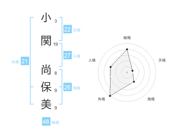 小関 尚保美さんを姓名の画数から五運を鑑定