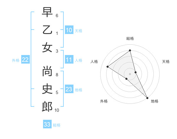 早乙女 尚史郎さんを姓名の画数から五運を鑑定
