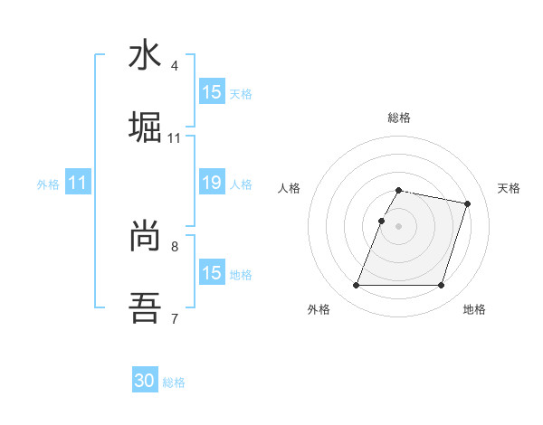 水堀 尚吾さんの天格は15画の4点!
