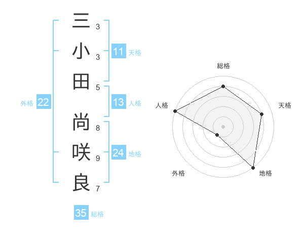 三小田 尚咲良さんの総格は35画の4点!