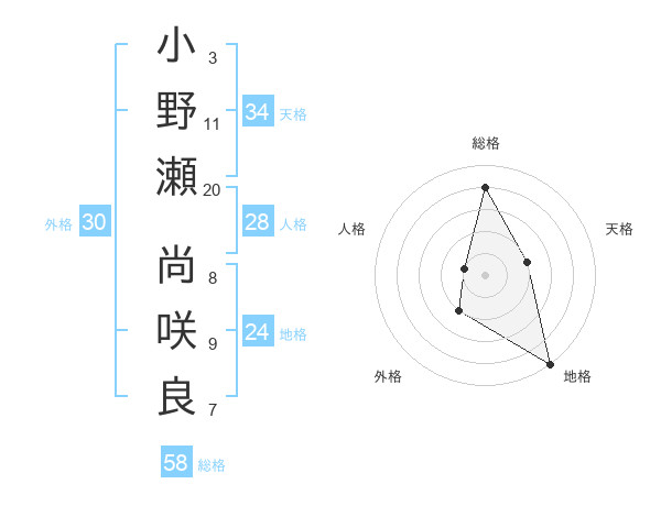 小野瀬 尚咲良さんを姓名の画数から五運を鑑定